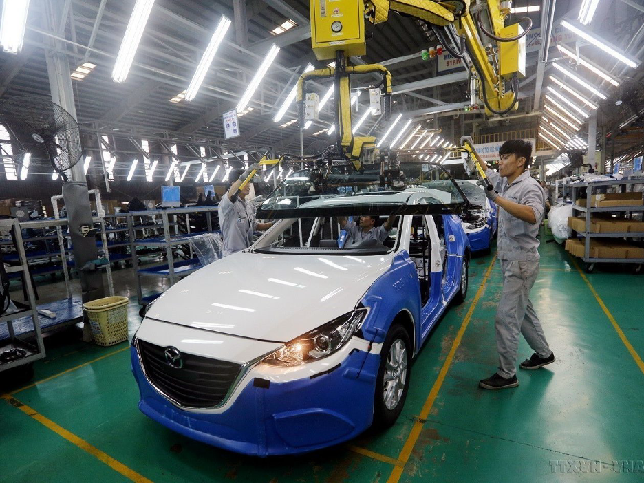A Mazda car assembly line of Truong Hai Auto JSC in Chu Lai Open Economic Zone in the central province of Quang Nam